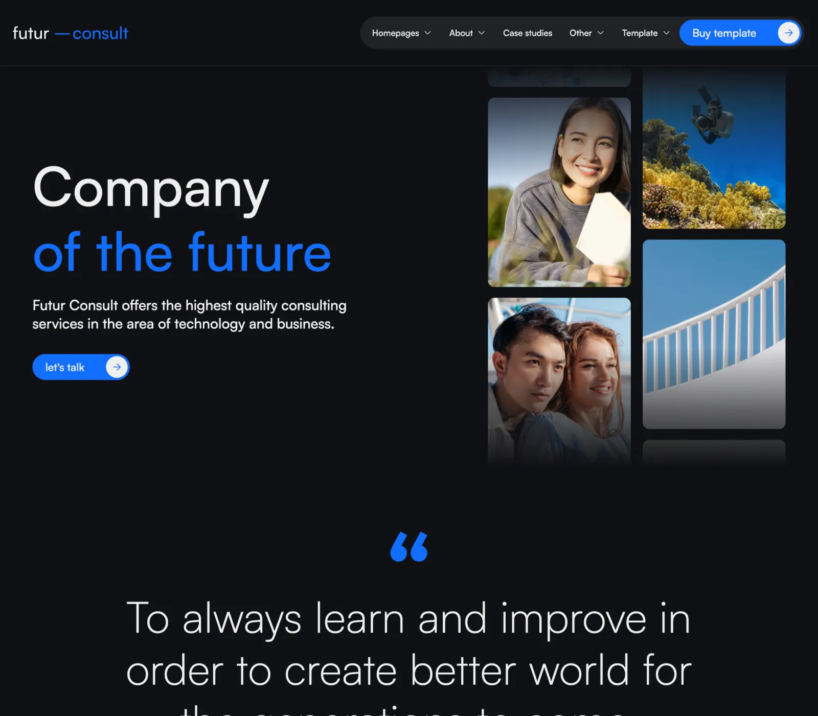Futur Consult is a premium and multi layout Webflow template designed for consulting agencies looking for a modern and trustworthy online presence.